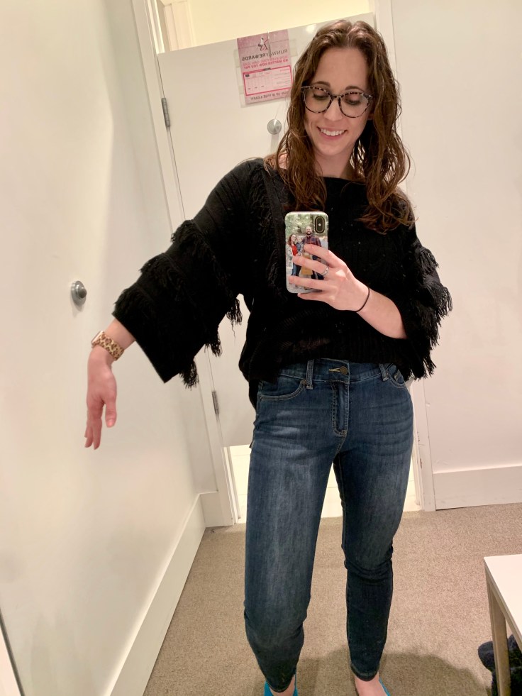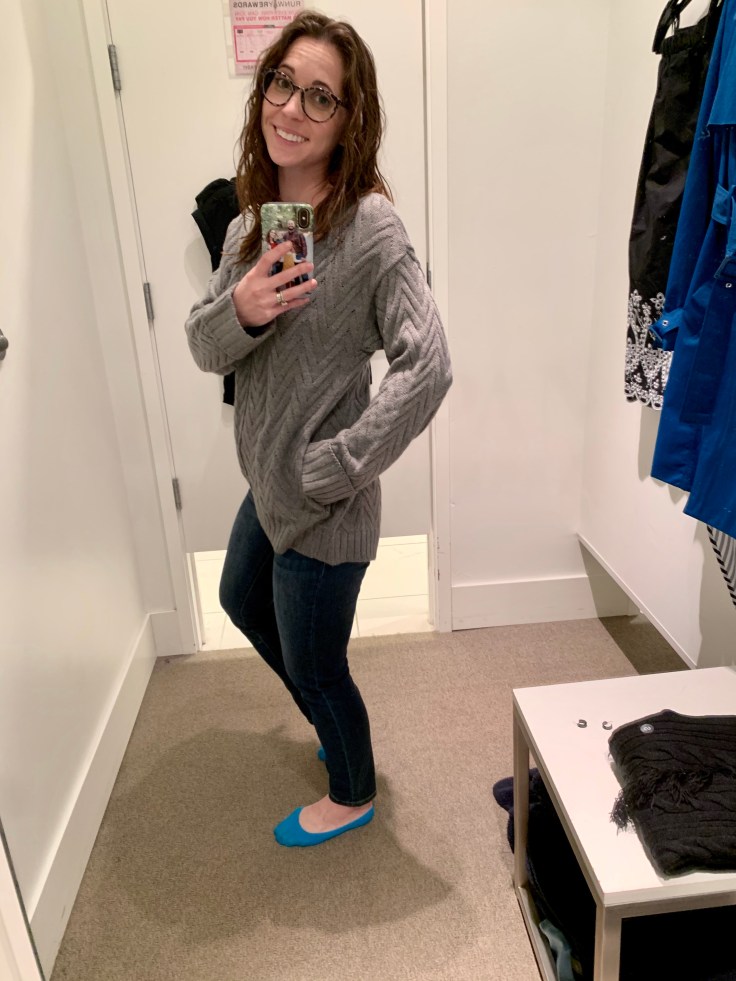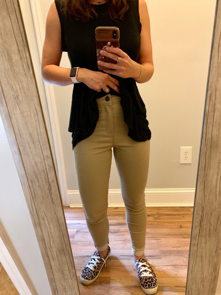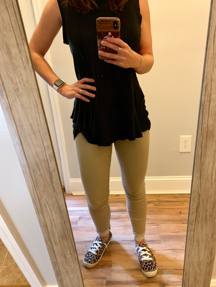I finally retired my pre- babies, AE low-rise khaki pants. You know the ones that I have to pull up by the belt loops when I go from sitting to standing. The ones that hit right at that perfect spot on my hips to create the fluffy muffin top. The ones that accentuated my umbilical hernia (thank you children) and that “mom pouch” with loose skin that no amount of ab workouts has seemed to fix in two years. Yeah those pants. Bye. 👋 You’re welcome world.