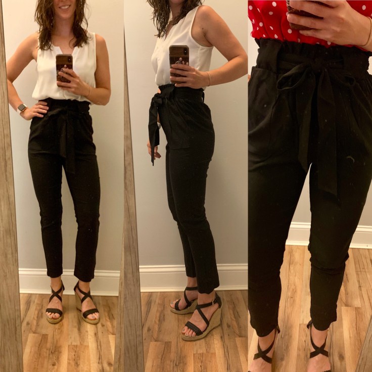 Mostly my work attire consists of colored jeggings and dresses. I don’t really have dress pants since having my kids. When I saw these a few months back I wasn’t sure they would work with my short torso, but I had been admiring the paper bag pants look since spring time. I ordered them when they were a lightening deal and was pleasantly surprised. They are super comfortable and I feel like the material is a good quality. They even shipped the belt in the bag separately so it didn’t get messed up.